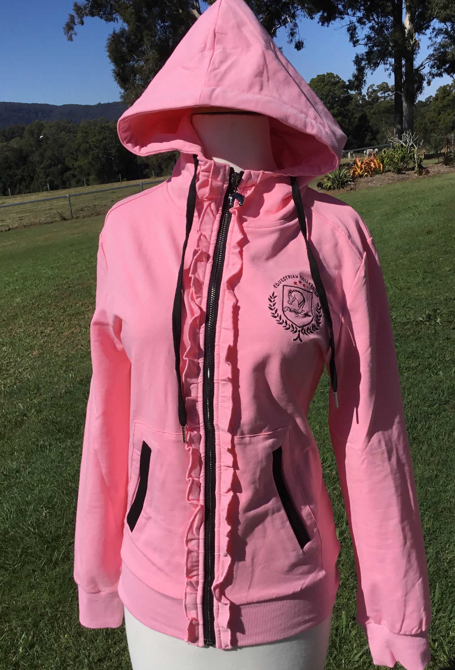 This lightweight zip up hoodie features front ruffle detailing, making a fashion-forward statement while keeping you comfortable. Perfect for updating your casual and horsey wardrobe, this hoodie is sure to become a go-to favourite.